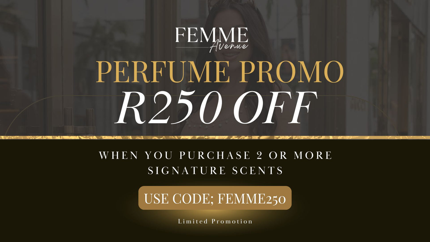 Buy any 2 perfumes and enjoy R250 OFF your order.